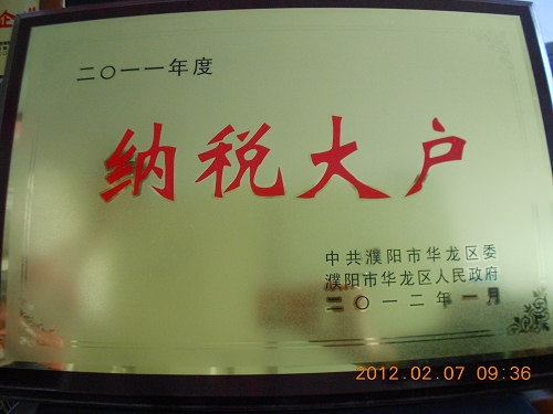 熱烈慶祝我公司獲得濮陽市華龍區(qū)納稅大戶稱號 (圖)