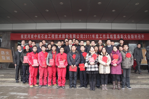 2012年1月15日上午8時30分,公司2011年度工作總結(jié)暨表彰大會在濮陽賓館隆重舉行。公司領(lǐng)導(dǎo)、一線員工、機(jī)關(guān)職能部門管理人員、員工親屬代表等300多人加了大會。