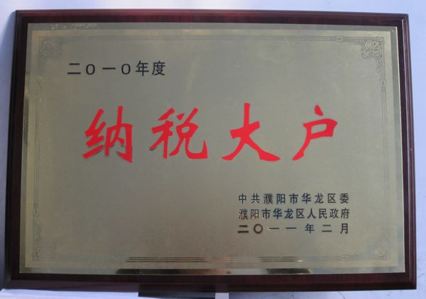 熱烈慶祝我公司獲得濮陽市華龍區(qū)納稅大戶稱號(hào) (圖)