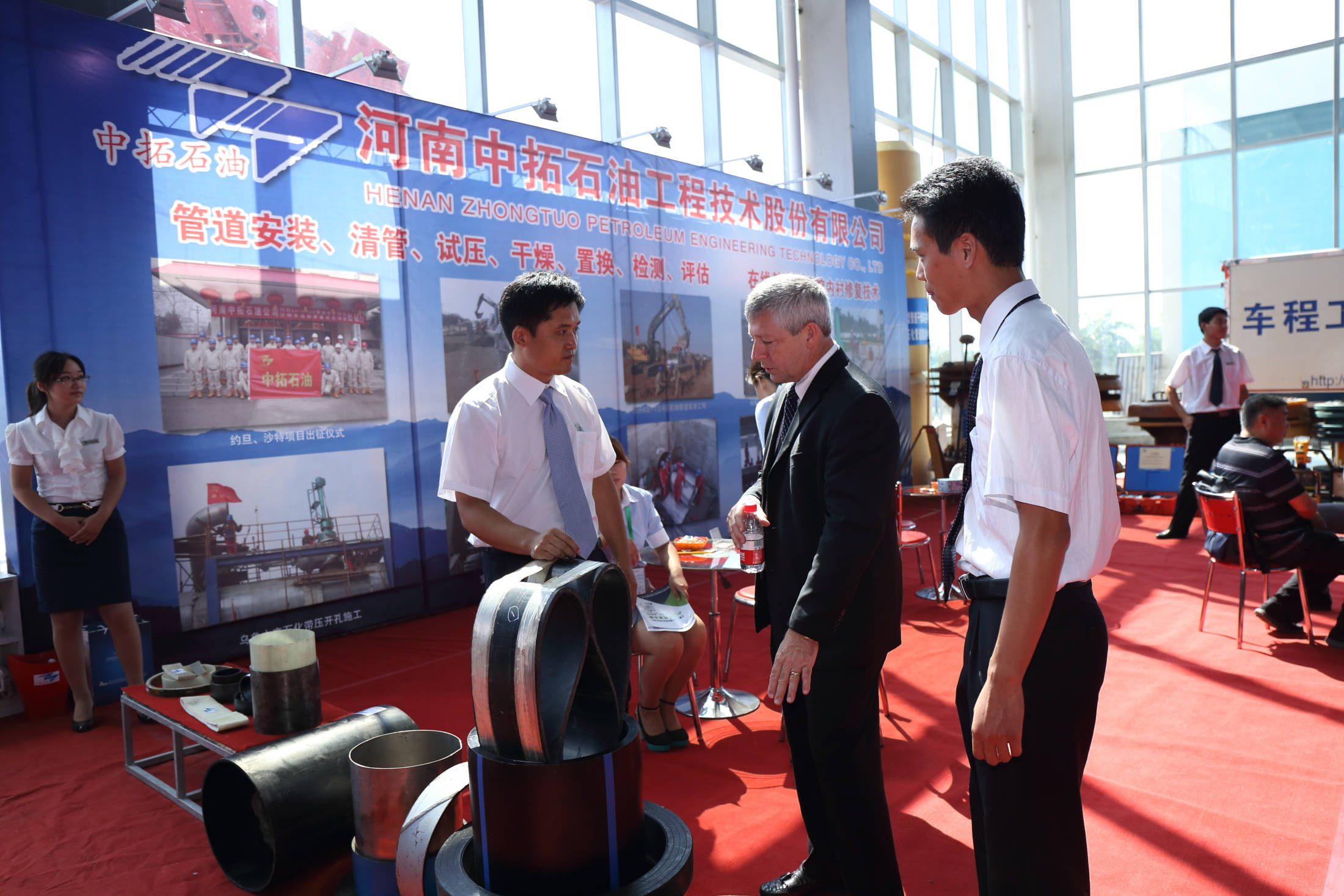 公司領(lǐng)導(dǎo)非常重視、珍惜這次難得的機(jī)遇,本次會展公司主要突出管道非開挖修復(fù)技術(shù)、機(jī)具,長輸管道清管試壓、干燥技術(shù)及管道檢測技術(shù)、儀器。展出的規(guī)模是我公司歷年參加展會技術(shù)、營銷人員最多,設(shè)備展品最多,展位面積最大,利用聲、光、電綜合效果最好的一次。展會期間工作人員精神飽滿,主動向來訪參觀者介紹講解相關(guān)技術(shù),同時也主動到其他參展單位學(xué)習(xí)、交流。期間,濮陽市電視臺對“中拓”也非常關(guān)注,進(jìn)行了采訪和報道。