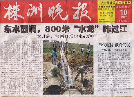 湘江穿越管線修復(fù)項(xiàng)目榮登《株洲晚報(bào)》頭版 (圖)