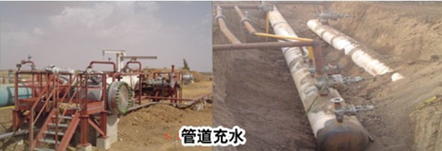 1.Water Filling. A Saparation Pig is required while filling water for HYDROTEST,to avoid any air into the target pipeline affecting the result.Apply water pump to fill the pipeline,pushing the saparation pig from the launching point to the End so as to full fill the pipe,make sure at least 95% of the pipe is full.