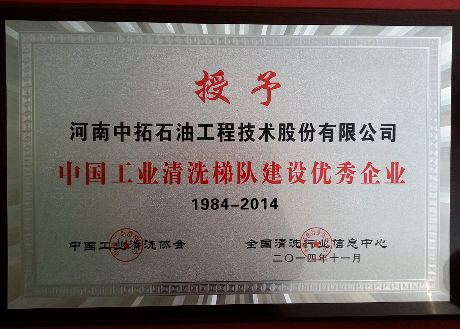On November 14, 2014, the company was awarded "China's industrial cleaning 30 years echelon construction excellent enterprise" and "China cleaning industry 30 years’ outstanding contribution enterprise" in the "the 14th national cleaning industry technical progress and cleaning industrial development BBS" meeting.